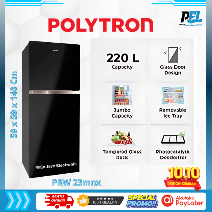 Kulkas 2 Pintu Polytron Jumbo Kulkas 2 Pintu 220 Liter PRW 23mnx Lemari Es Politron - Official Store