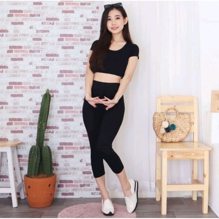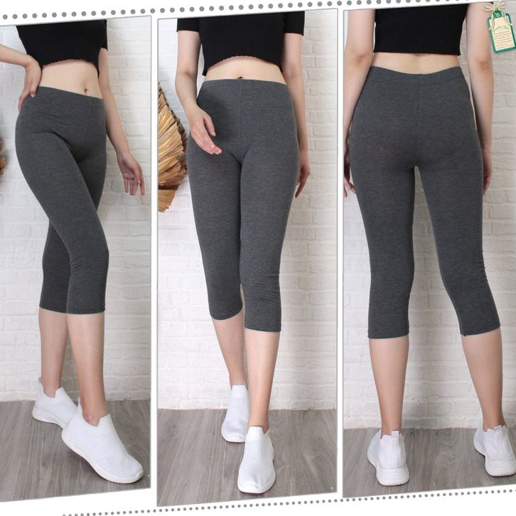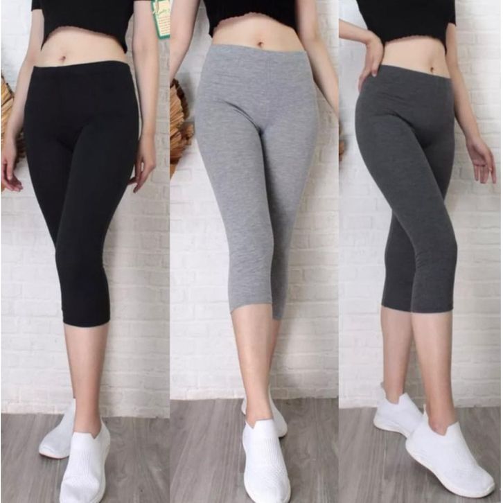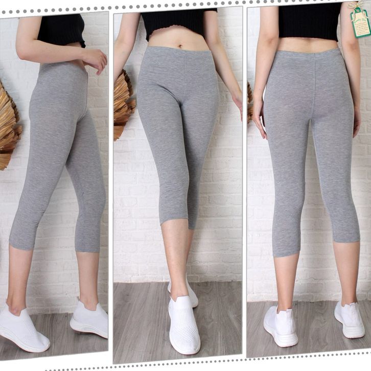 Celana Legging Cewek Dewasa Lejing Olahraga Senam Fitness Gym Atletis Panjang 3/4 Kaos Rayon Ukuran Standar Jumbo