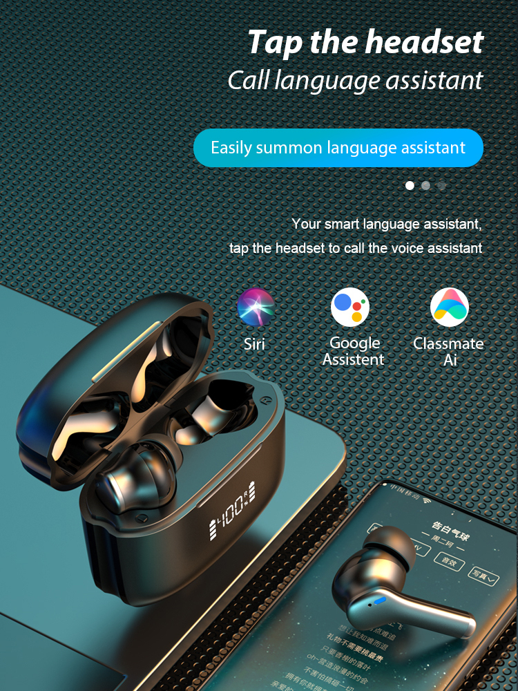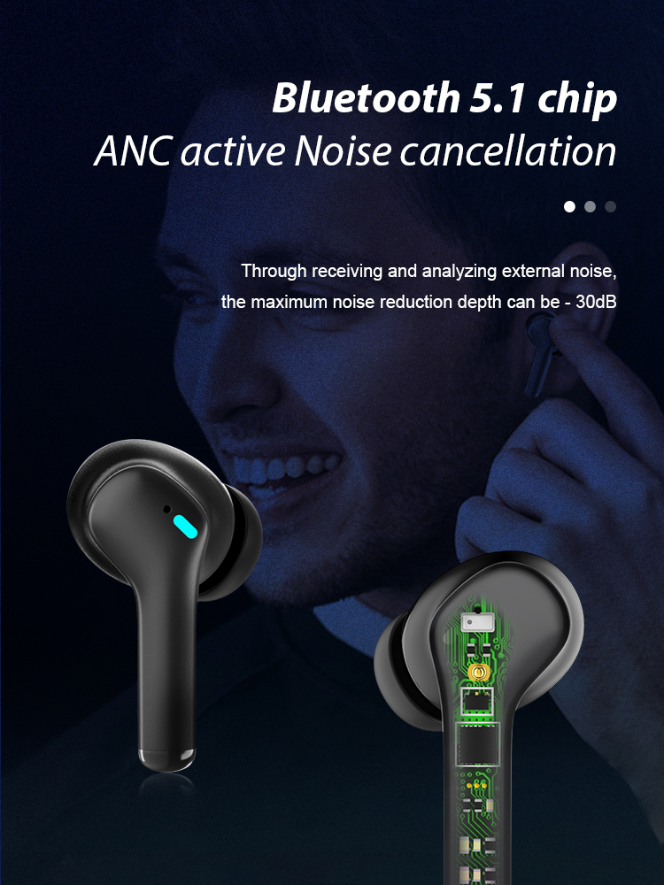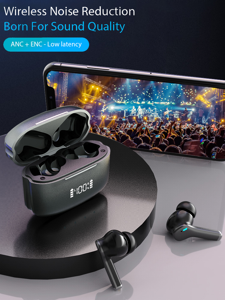 Earphone Bluetooth M48 ANC TWS 5.1 Earphones, Active Noise Cancelling Headphones low latency, 4-mic ENC noise reduction