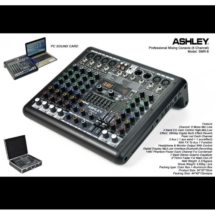 MIXER AUDIO ASHLEY SMR6/SMR 6 6 CHANNEL USB-MP3-BLUETOOTH ORIGINAL