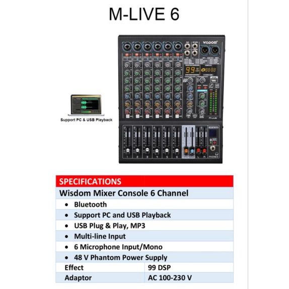 mixer audio wisdom live6 live 6 6CH bluetooth soundcard original