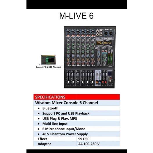 Mixer audio wisdom m live6 m live 6 6CH usb soundcard garansi original