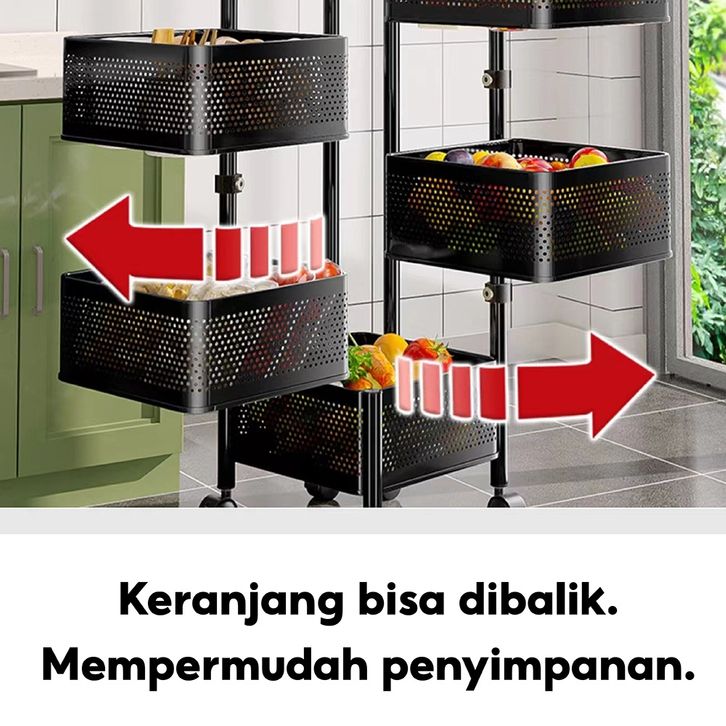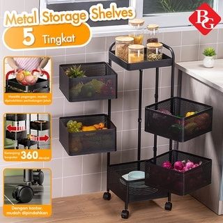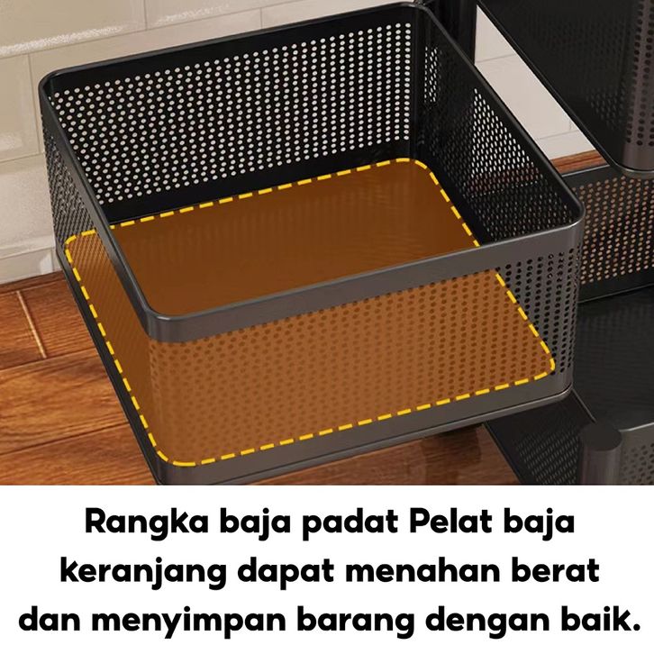 Rak Dapur Troli Besi Stainless Serbaguna Penyimpanan Multifungsi Dengan Roda Pegangan Rak Susun Rak Besi Serbaguna