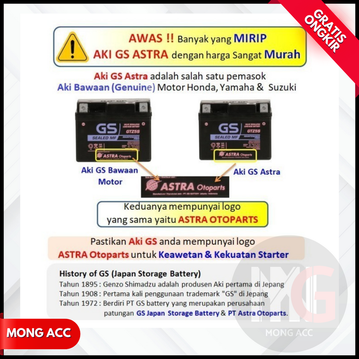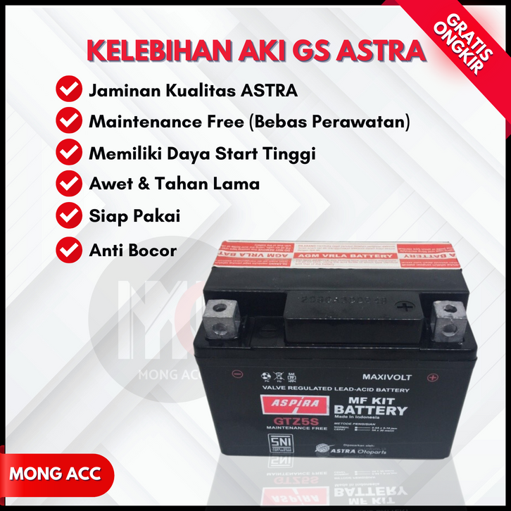 Aki Motor Honda Beat Fi Beat Karbu Pop Vario 110 125 Mio Gtz5 Accu Kering MF GS Astra Original Motobatt