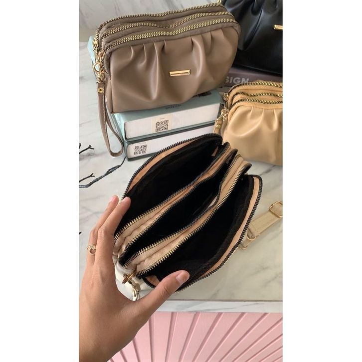 Tas Selempang Wanita Clutch Vhina Tiga Ruang Sling Bag Premium Cewe Tas Fashion Kekinian Muat HP Dompet Kosmetik