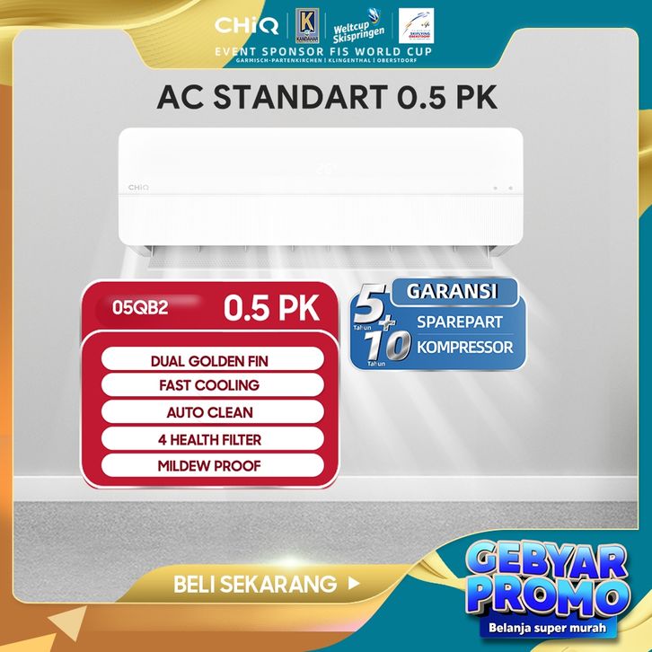 CHiQ AC 1/2 PK STANDARD 05QB2 INDOOR + OUTDOOR UNIT ONLY FAST COOLING SLEEP M0DE ECO M0DE SELF CLEANING AND HEALTH CARE