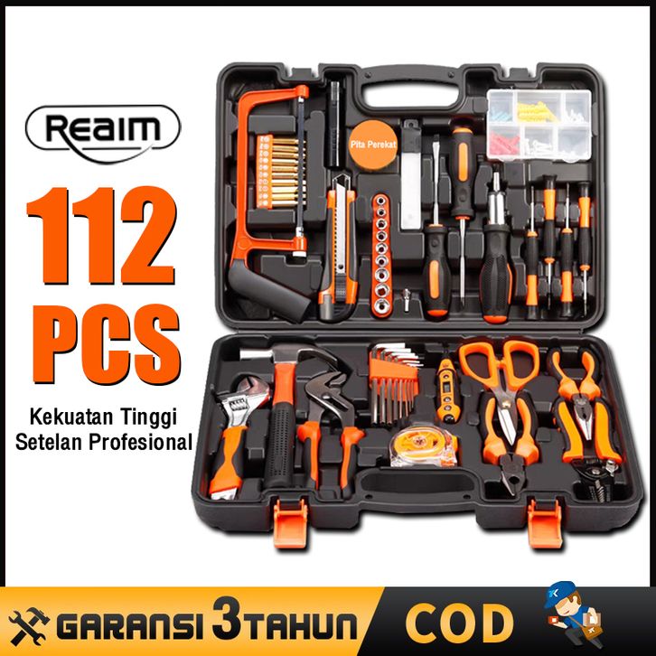 Reaim Hand Toolset 112PCS Tool Kit Alat Rumah Tangga Tool Kit Set Toolkit Toolbox Reaim-Gjtz112