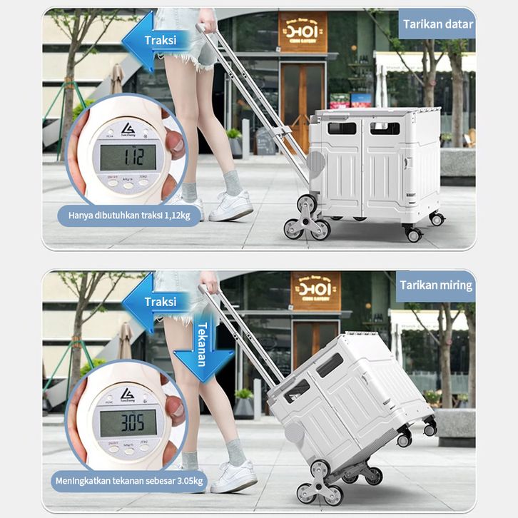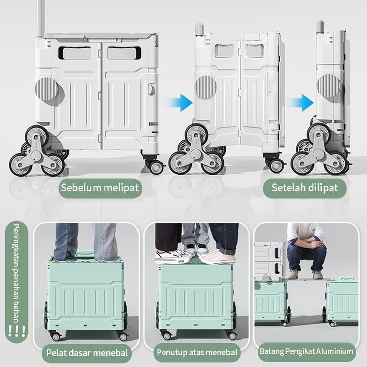 Penyimpanan Troli Keranjang Belanja Lipat yang Lebih Besar Bergerak Mudah Dibawa Mudah Dibawa Roda Belanja Troli Pemanj