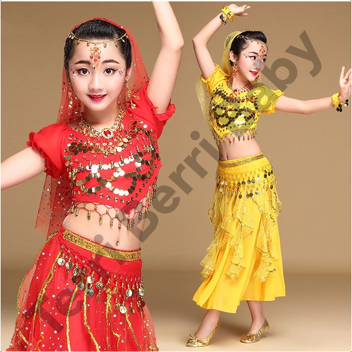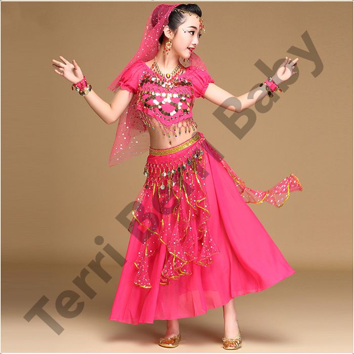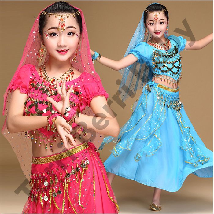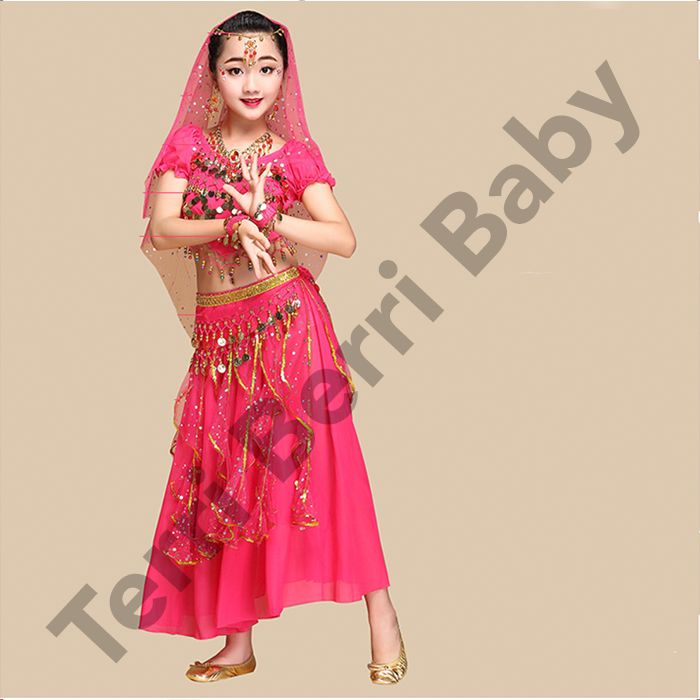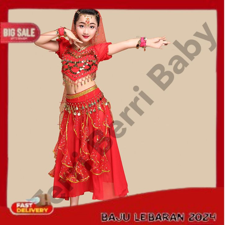 Kostum pakaian adat tradisonal India girl belly dance setelan Anarkali lehenga nari tari perut anak perempuan baju khas