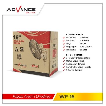Advance WF16 Kipas Angin Dinding 16 inch Hembusan Angin Kencang Dengan Daya 60 Watt Kipas Angin Low Watt
