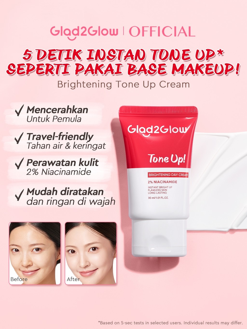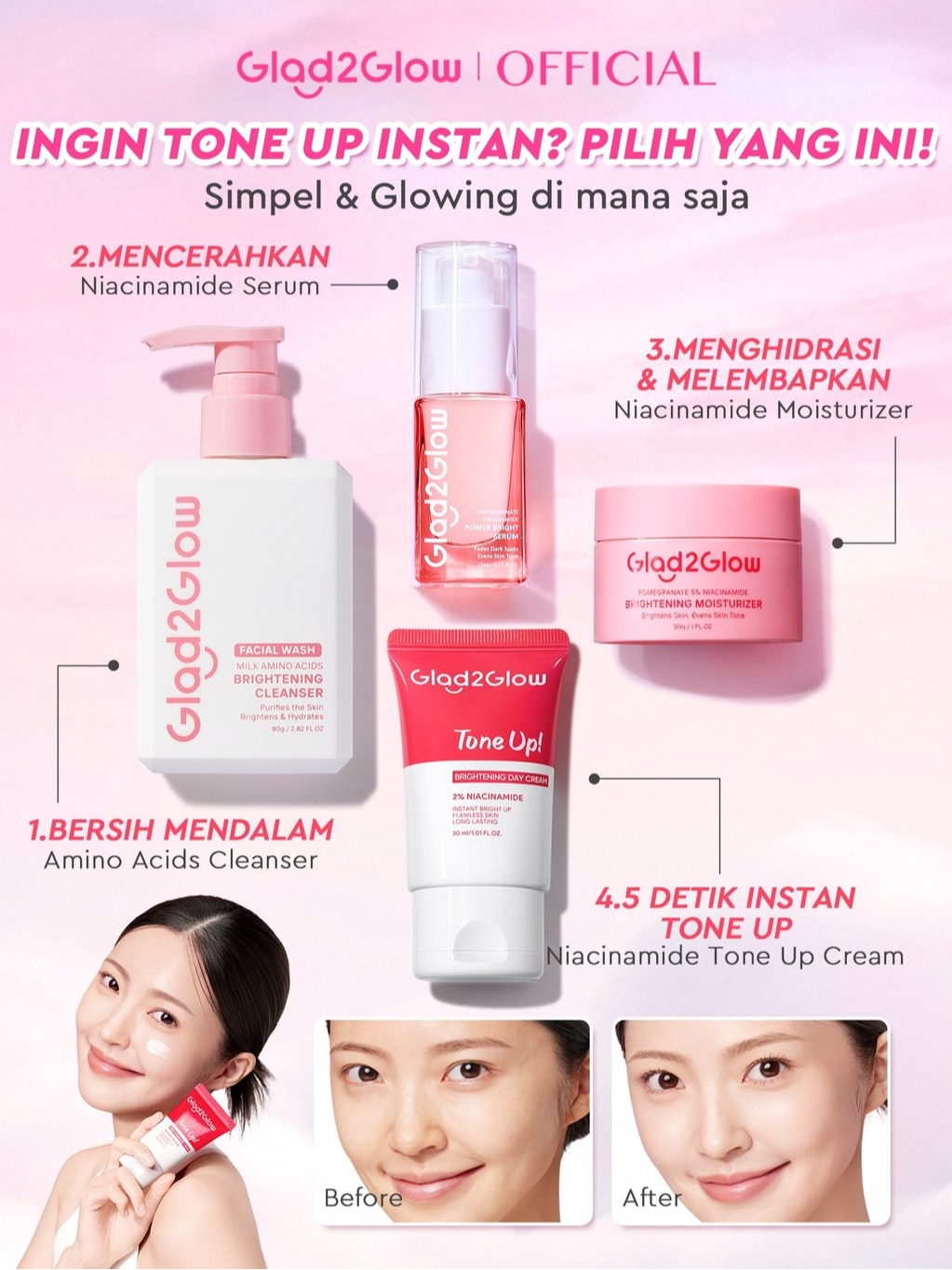 [Star] Glad2Glow Brightening Niacinamide Tone Up Cream 4in1 Day Cream 4PCS bundle cerah Moisturizer brightening wajah
