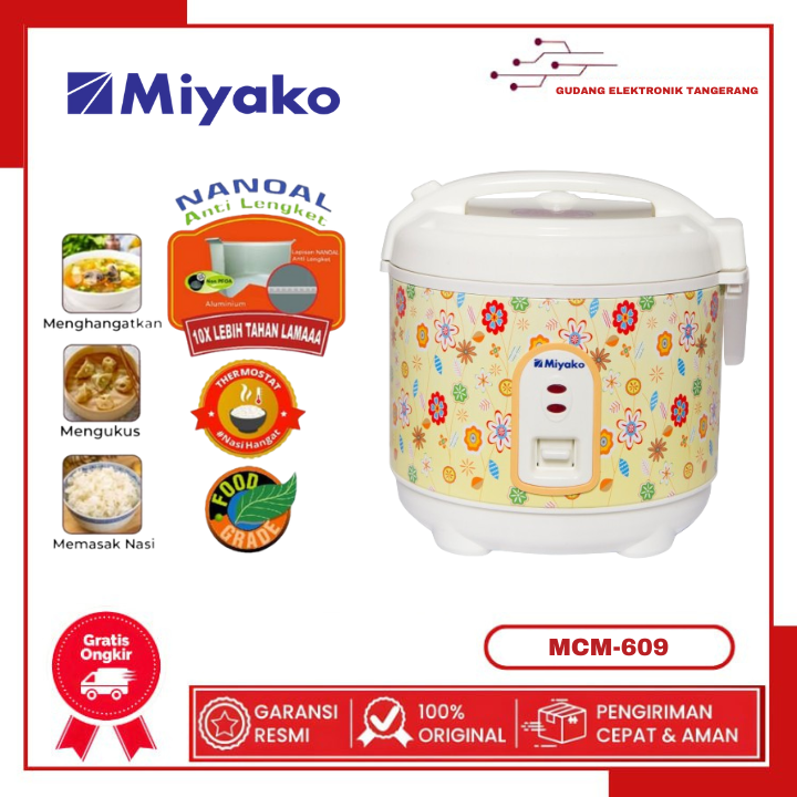 RICE COOKER MIYAKO MCM-609 MAGICCOM 0,6 LITER ANTI LENGKET GARANSI RESMI ORIGINAL MIYAKO OFFICIAL STORE