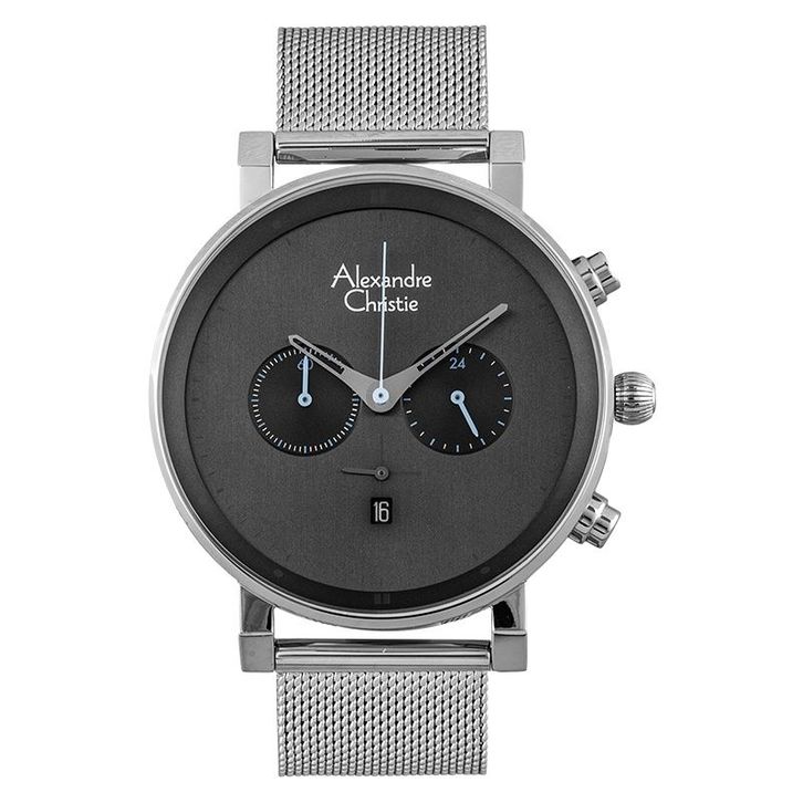 JAM TANGAN ALEXANDRE CHRISTIE ORIGINAL Pria AC 6547 MC BSSGR Chronograph Men Black Dial Mesh Strap