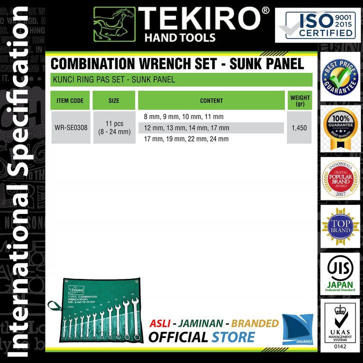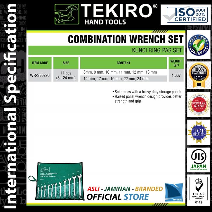 KUNCI RING PAS SET 11 pcs UKURANN METRIC DAN Inch / COMBINATION WRENCH / SPANNER SET / TEKIRO