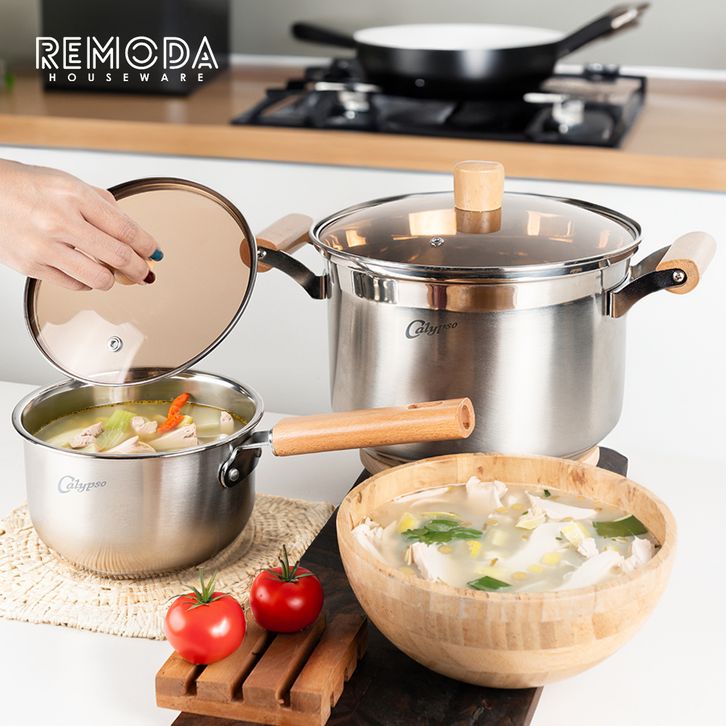 Calypso High Soup Pot Panci Sup Tinggi Panci Susu Panci Multifungsi 18-26cm Panci Stainless Steel Tebal Gagang Kayu