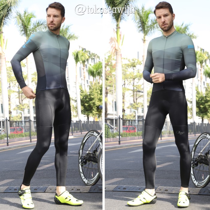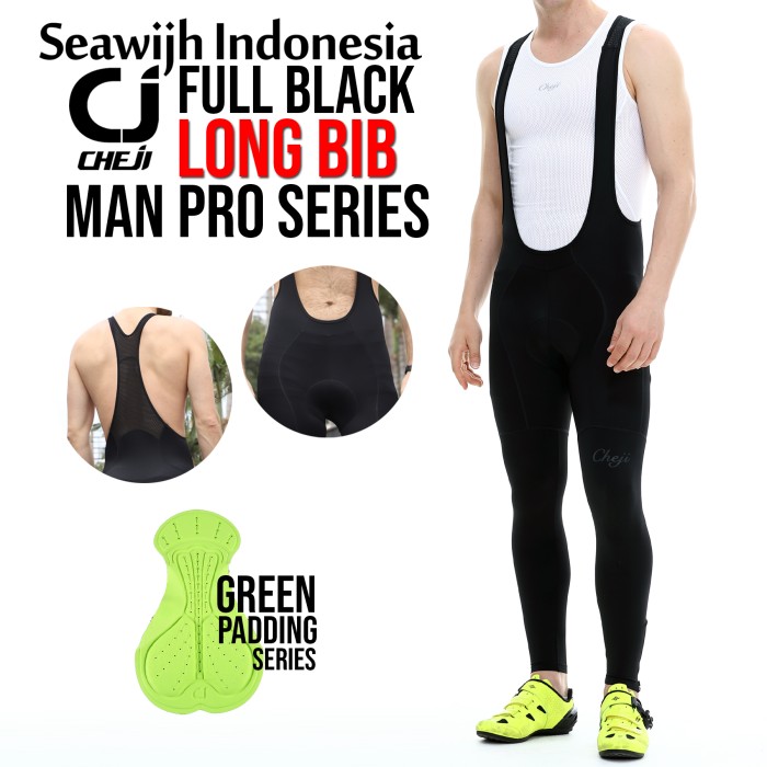 Celana Padding Sepeda Long Bib Panjang Pria Full Black Cheji - M