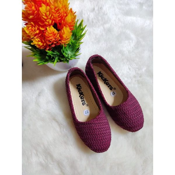 Sepatu Flatshoes Anak Perempuan Sepatu Selop Cewe Sekolah Kasual Rajut Kualitas Import Tidak Melar Size 26 - 35