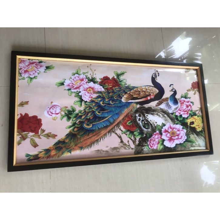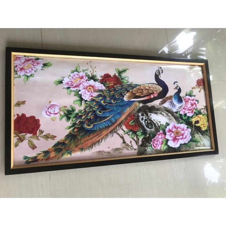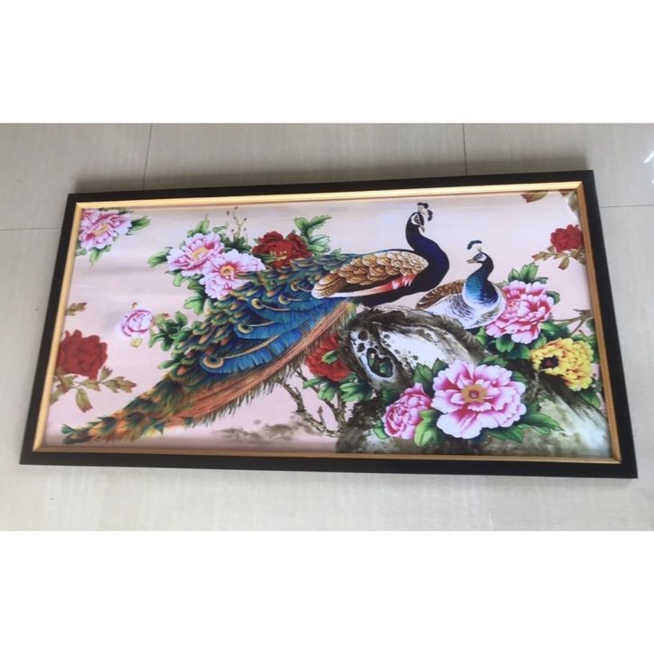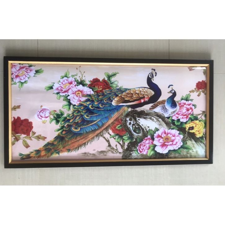 TERMURAH ! Hiasan Dinding Cetak Gambar Lukisan Sepasang Burung Merak Cantik dan Bunga plus Bingkai uk:50cm x 95cm