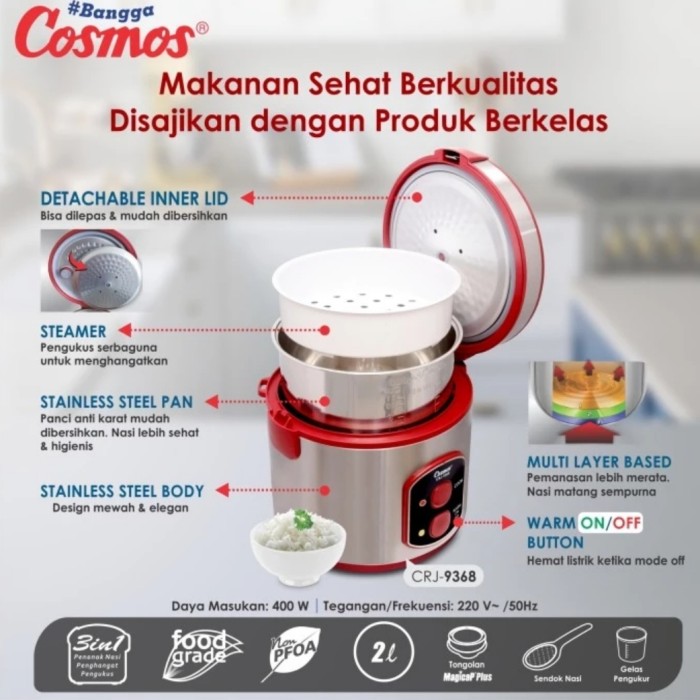 COSMOS : CRJ9368 MAGIC / RICE COOKER 3 IN 1 2 LITER STAINLESS CRJ 9368