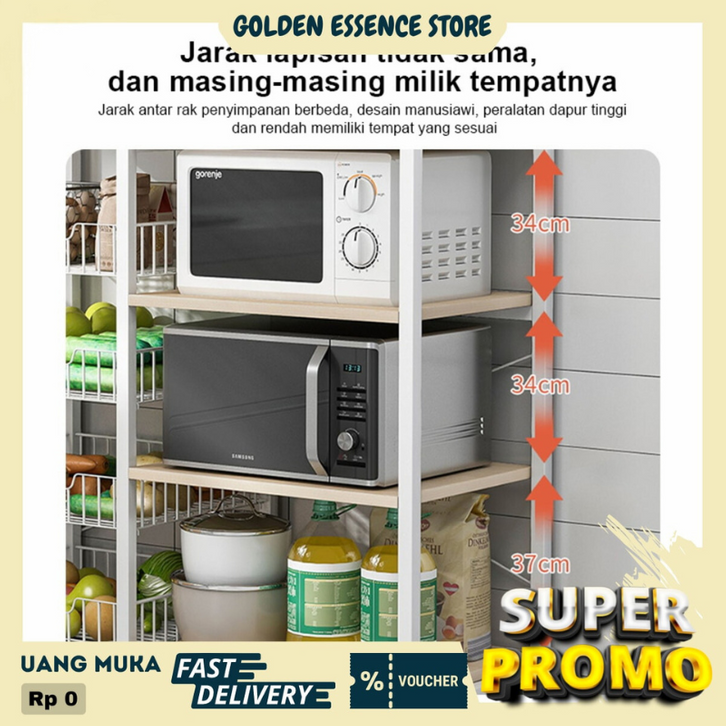 Lemari Dapur Minimalis Rak Dapur 5 Susun Rak Oven Microwave Serbaguna Rak Besi Kuat Kokoh Berkualitas Rak Piring