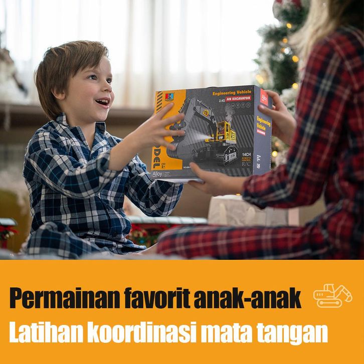 TATAJOY 2.4GHZ ESKAVATOR PADUAN MAINAN RC 14 ESKAVATOR LAMPU SEMPROTAN SIMULASI BATERAI MESIN MAINAN ANAK
