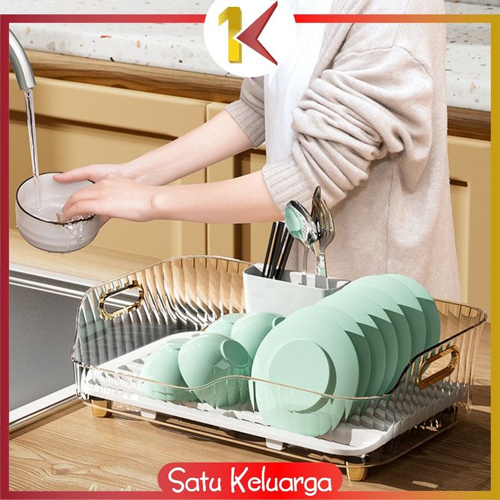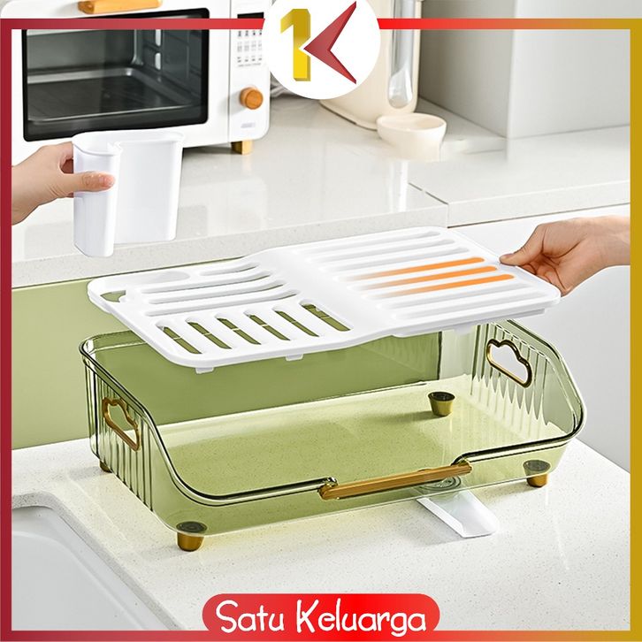 SK-C1079 Rak Pengering Piring Transparan Serbaguna Dish Drying Aesthetic / Tempat Buah Sayur Wadah Pengering