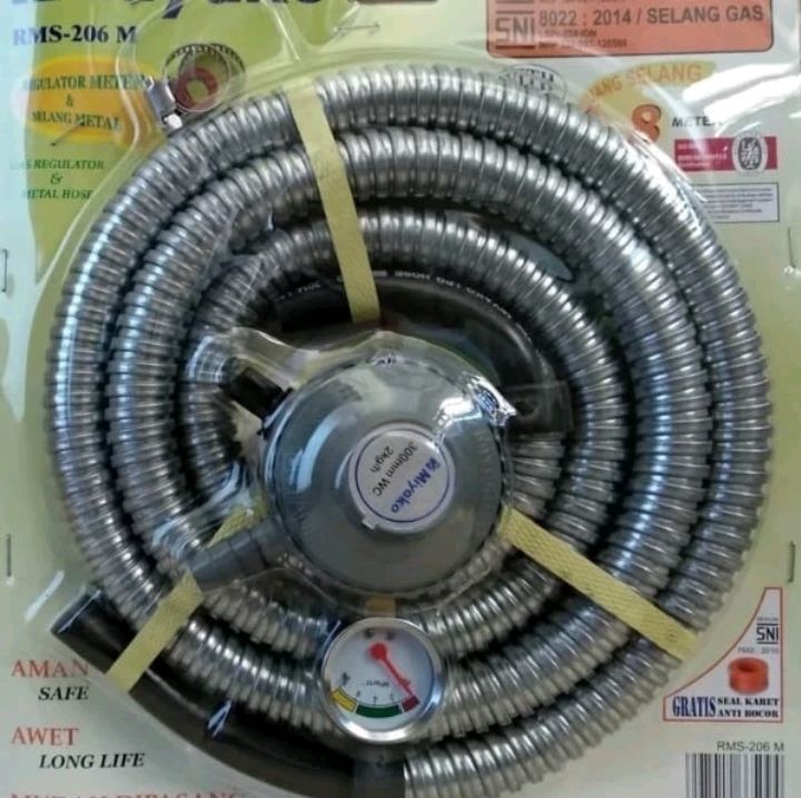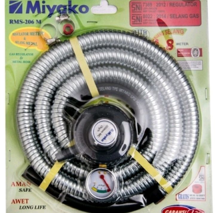 Paket Selang Gas dan Regulator MIYAKO RMS-206 M, Selang Kompor Gas dan Regulator Gas LPG