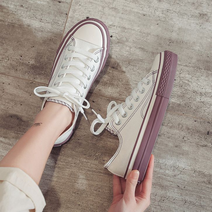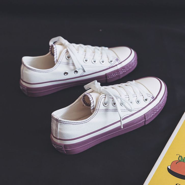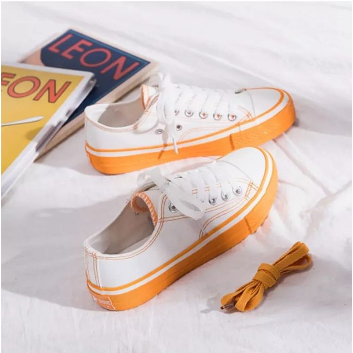 Sepatu Wanita Sneakers Cewek Dua Warna Tali Kasual Sepatu Sekolah Kerja Ungu Orange Bahan Kanvas Size 36 37 38 39
