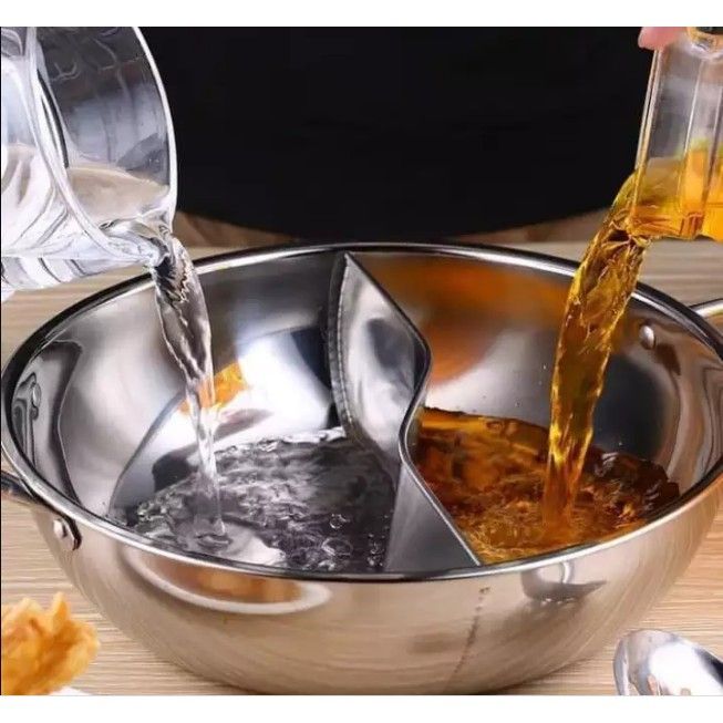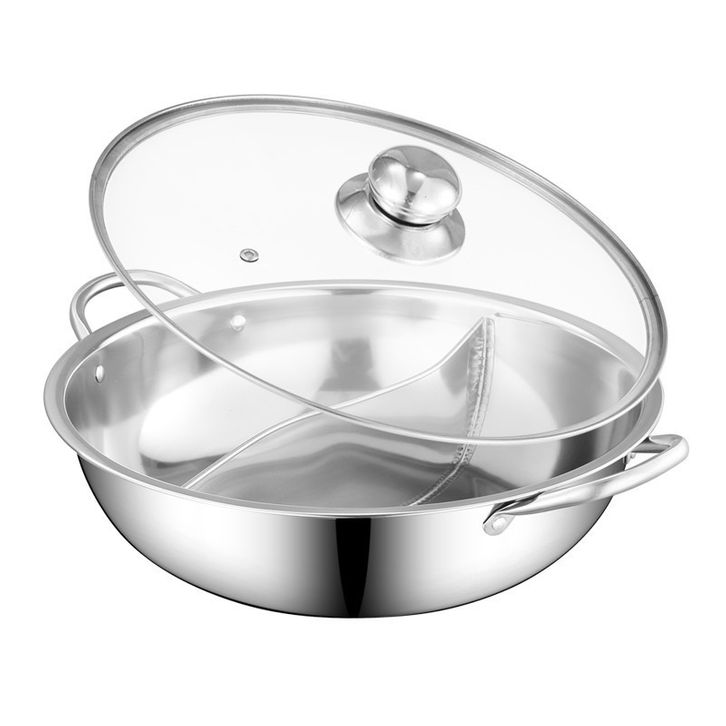 Panci Shabu 28 30 Cm Tutup Kaca Panci Sekat Hotpot Steamboat Stainless