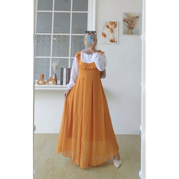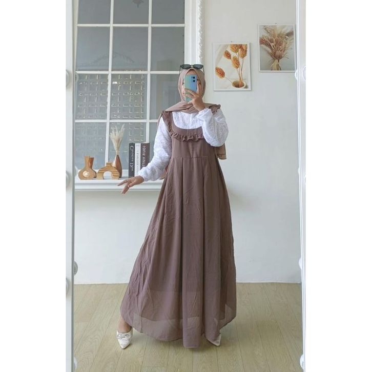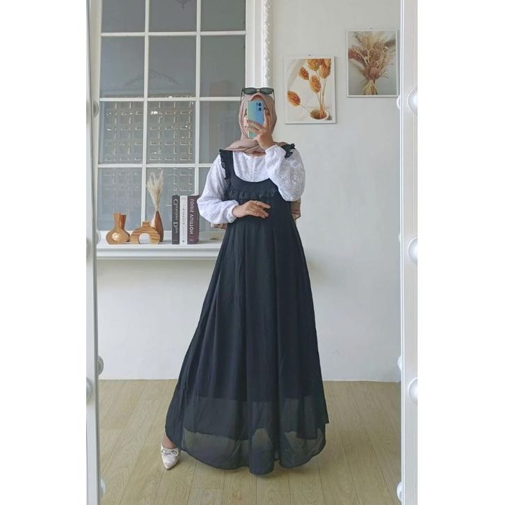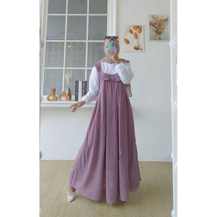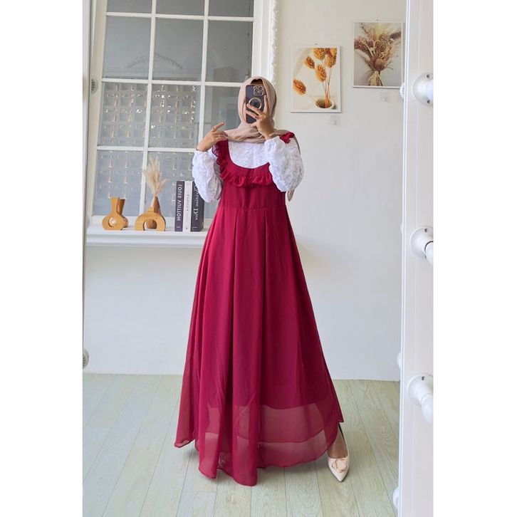 Gamis Ceruty Brukat Bronello Dress Muslimah Wanita Lengan Panjang Polos Pakaian Perempuan Fashion Kekinian Trend