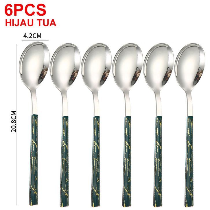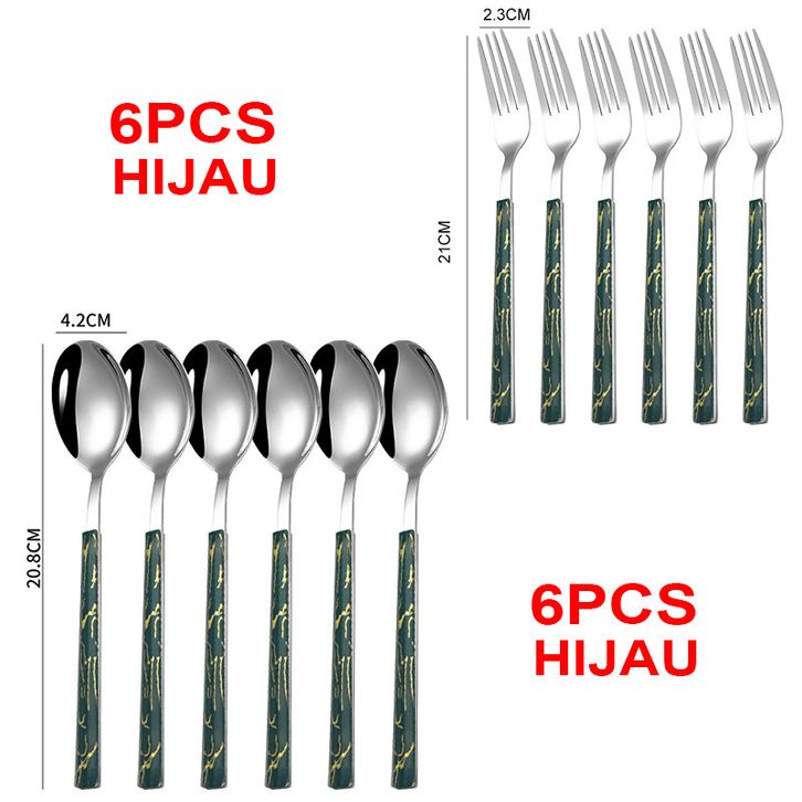 【12pcs】GYT Sendok makan tebal Sendok Garpu Set Marble Premium Superior Stainless Spoon 6pcs/4pcs