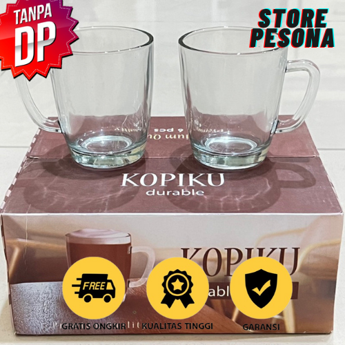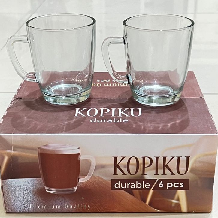 satu set gelas gagang kopiku polos isi 6