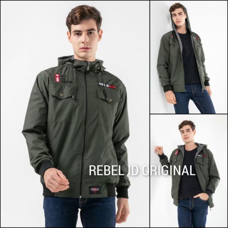 Jaket Parasit Windproof Outdoor Rebel Id Unisex Pria Wanita Jacket Parasut Hiking Keren Ukuran L XL Cowok Cewek Trend