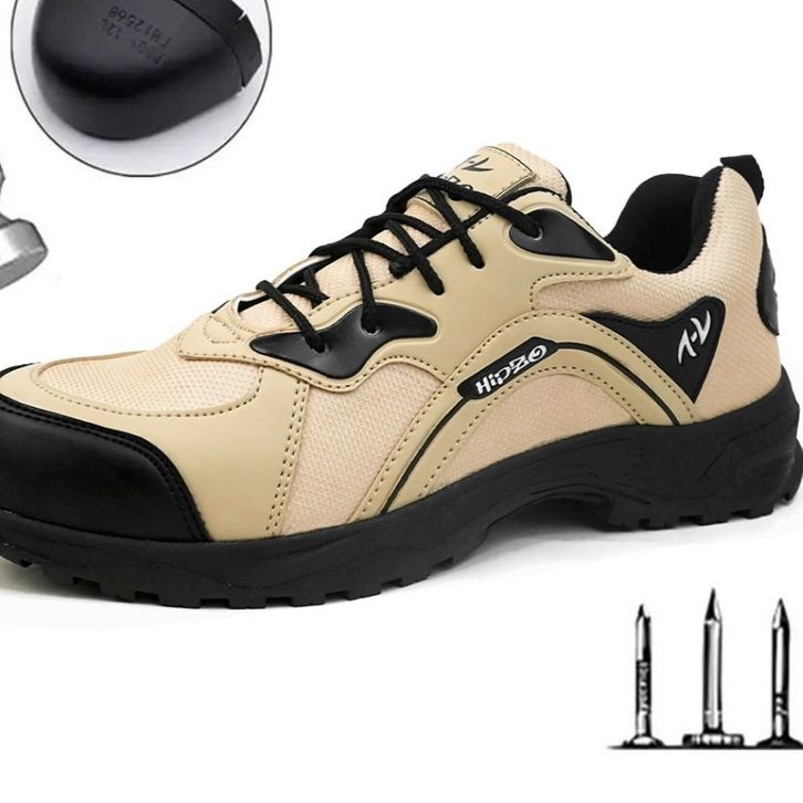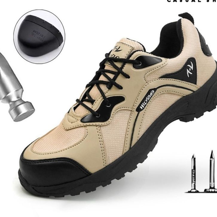 Sepatu Safety Pria Kerja Pabrik Proyek Tambang Ujung Besi Outsole Tahan Paku Anti slip Aman Safe Cream Size 39-43