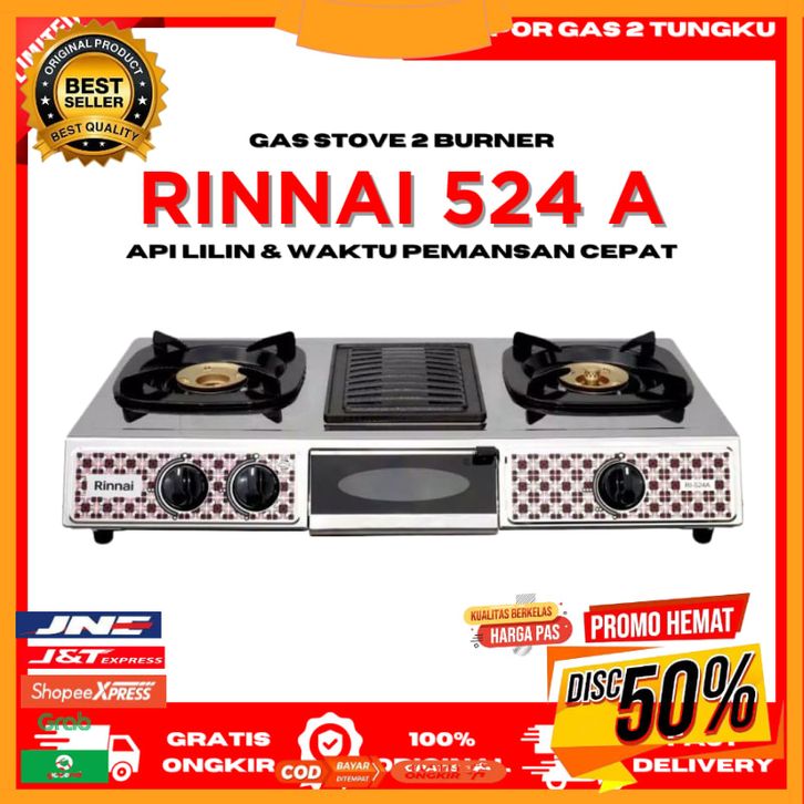 RINNAI 524 API LILIN STAINLESS STEEL GRILL PLATE KOMPOR GAS BEST SELLER KOMPOR TANAM TERLARIS KOMPOR TANAM MODEL BARU