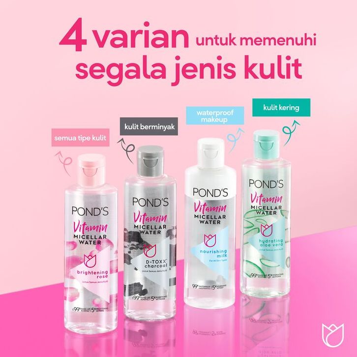Ponds Vitamin Micellar Water Makeup Remover Brightening Rose For All Skin Type 55Ml