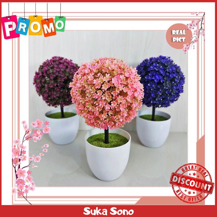 UNICO Ornamen Tanaman Pot Bunga Bonsai Artificial bunga Hias Dekorasi Bunga Plastik PBP03