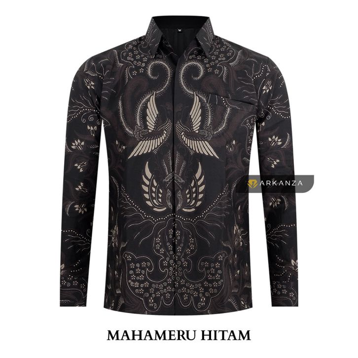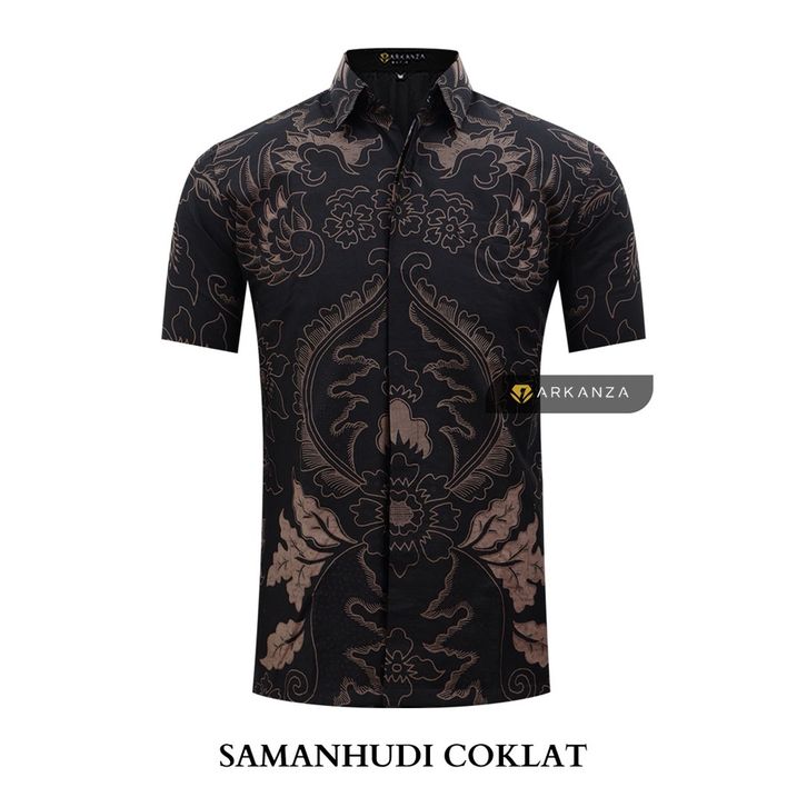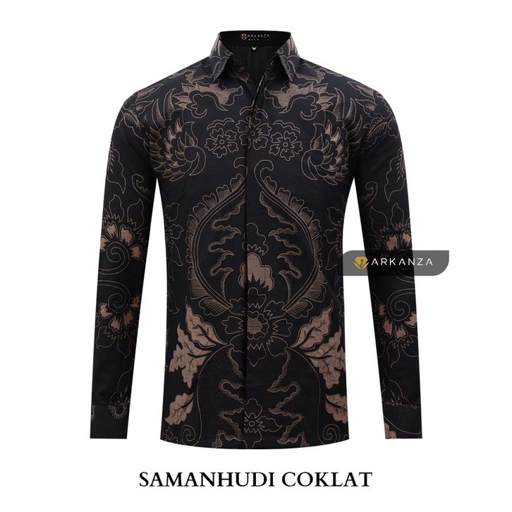BATIK ARKANZA Motif SAMANHUDI COKLAT Hem Atasan Kemeja Baju Batik Pria Cowok Laki Laki Slimfit Full Lapis Furing Lengan