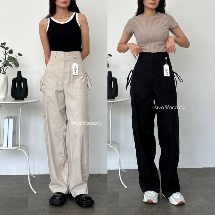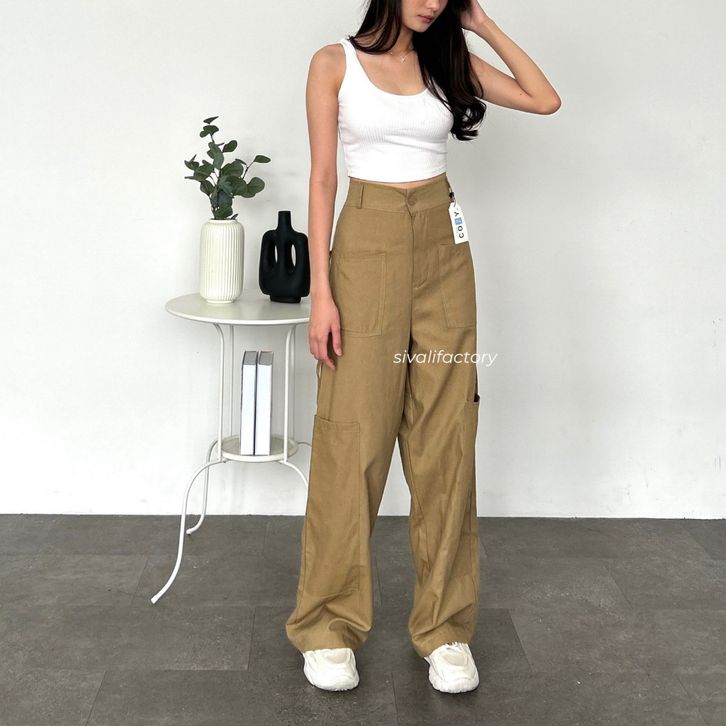SIVALI Clay Pants - Highwaist Loose Cargo - Celana Kargo Wanita - Baggy Pants