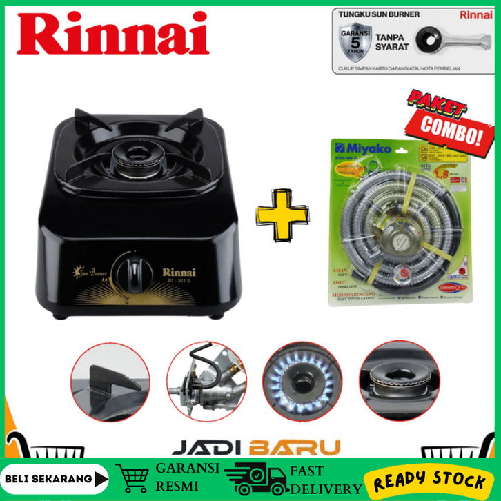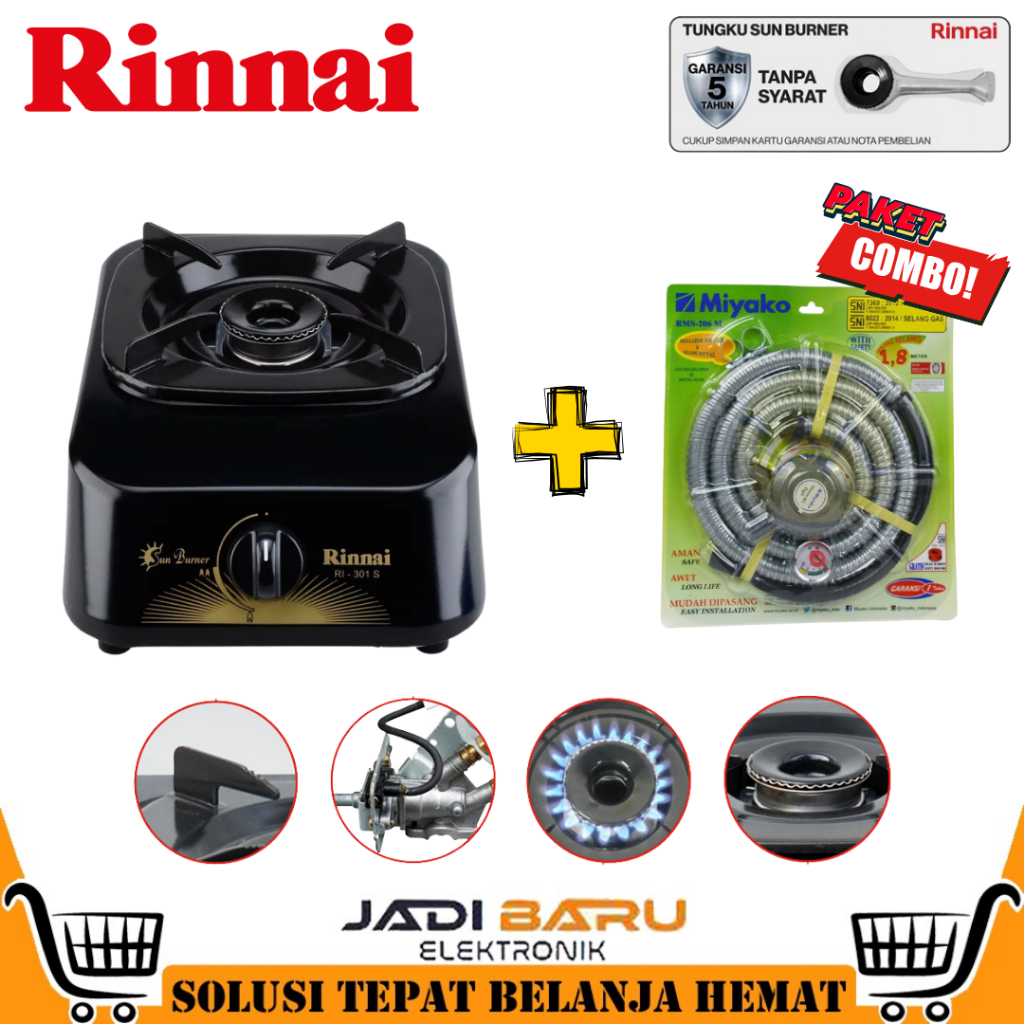 Kompor Gas 1 Tungku Rinnai 301 S Bonus Selang Gas + regulator SNI / Kompor Rinnai 1 Tungku / Kompor Rinai 1 Tungku