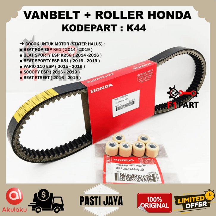 Vanbelt + Roller K44 Beat Esp Pop Scoopy Esp Vario 110 Esp Stater Halus Vanbel Roler Honda Fi F1 Esp Van Belt Bel