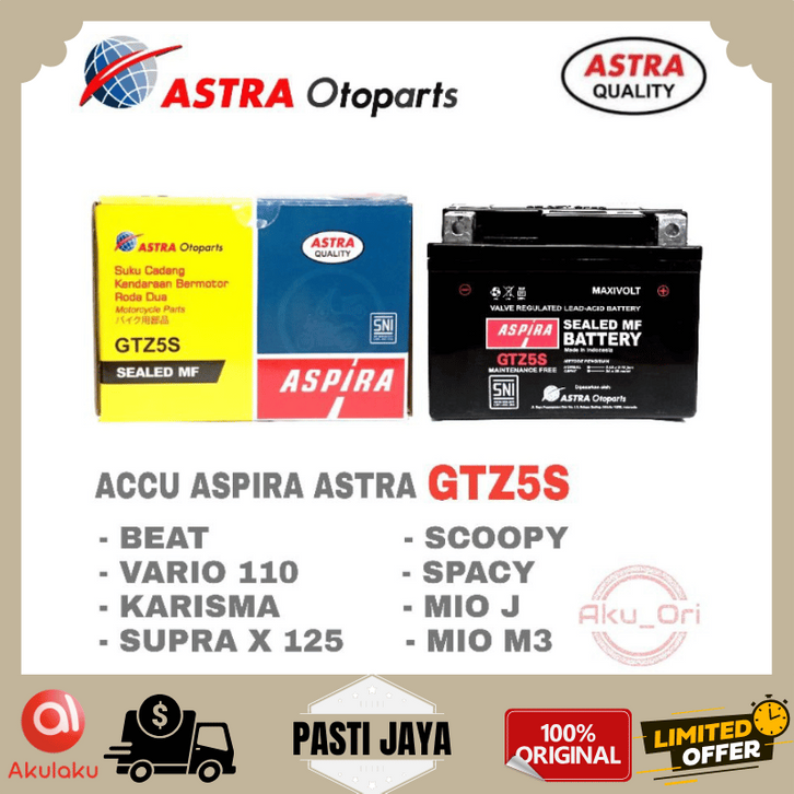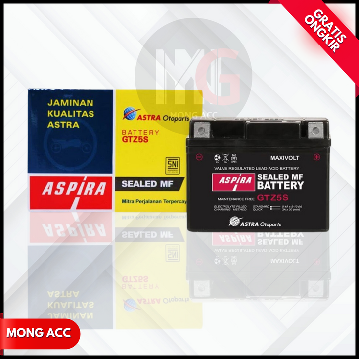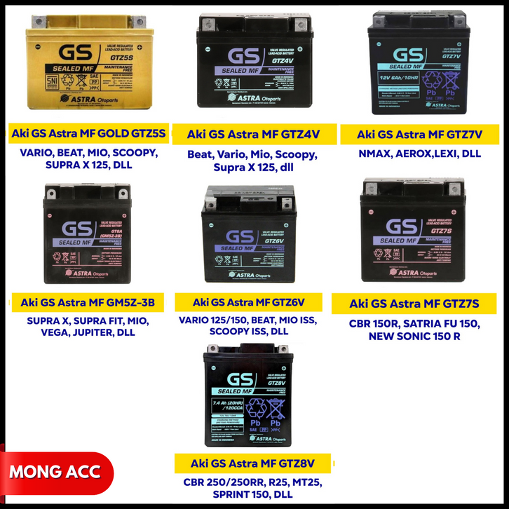 Aki Motor Honda Beat Fi Cw, Beat Karbu, Vario 110, Revo, Supra X 125, Xeon Motobatt Mtz5s Aki Kering Gel Original