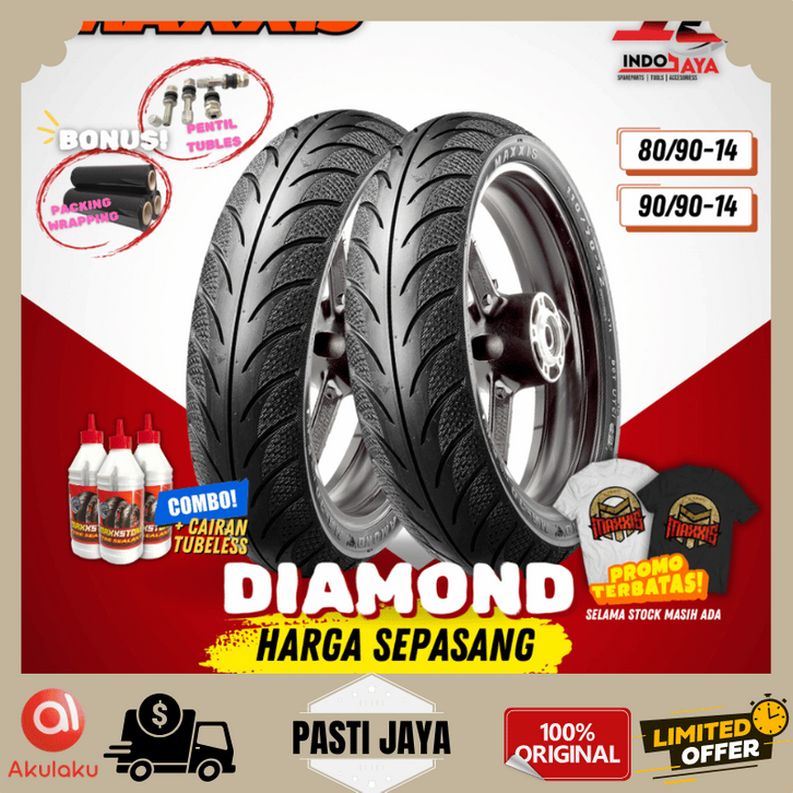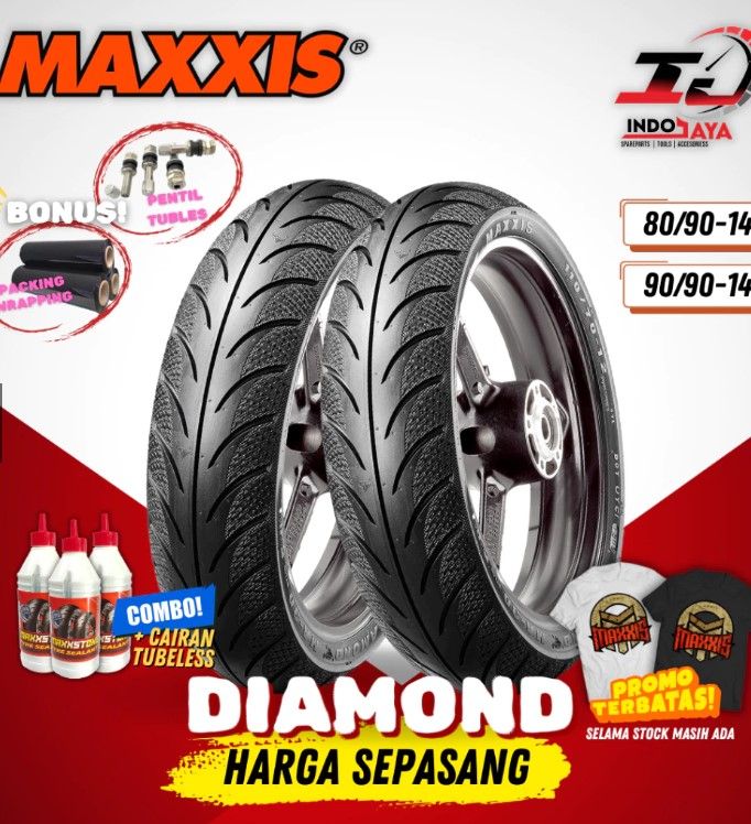 Sepasang 80 / 90 + 90 / 90 Ring 14 Maxxis Ma 3dn Diamond Ban Tubeless Luar Motor Matic Beat Vario Mio Maxis Ma3dn Tubles