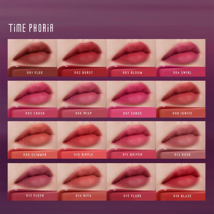 001 Flux, 002 Burst, 003 Bloom, 004 Swirl, 005 Crush, 006 Wisp, 007 Surge, 008 Ignite, 009 Glimmer, 010 Ripple, 011 Quiver, 012 Hush, 013 Flush, 014 Diva, 015 Flare, 016 Blaze, 017 Rift