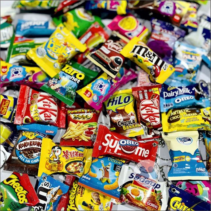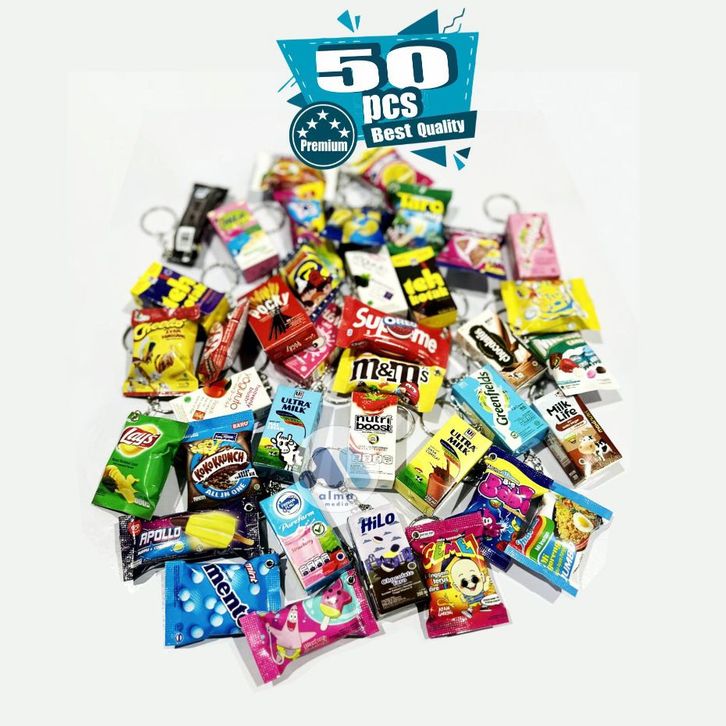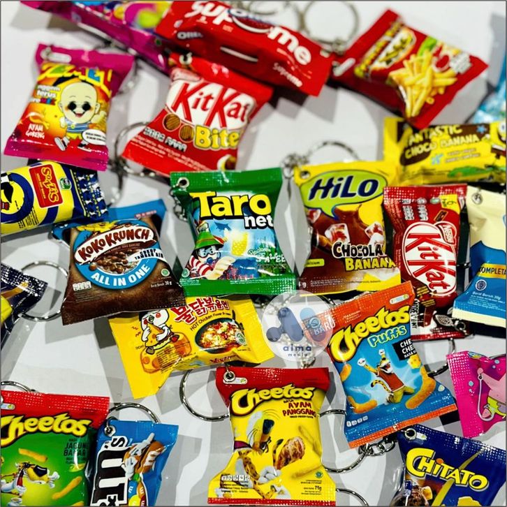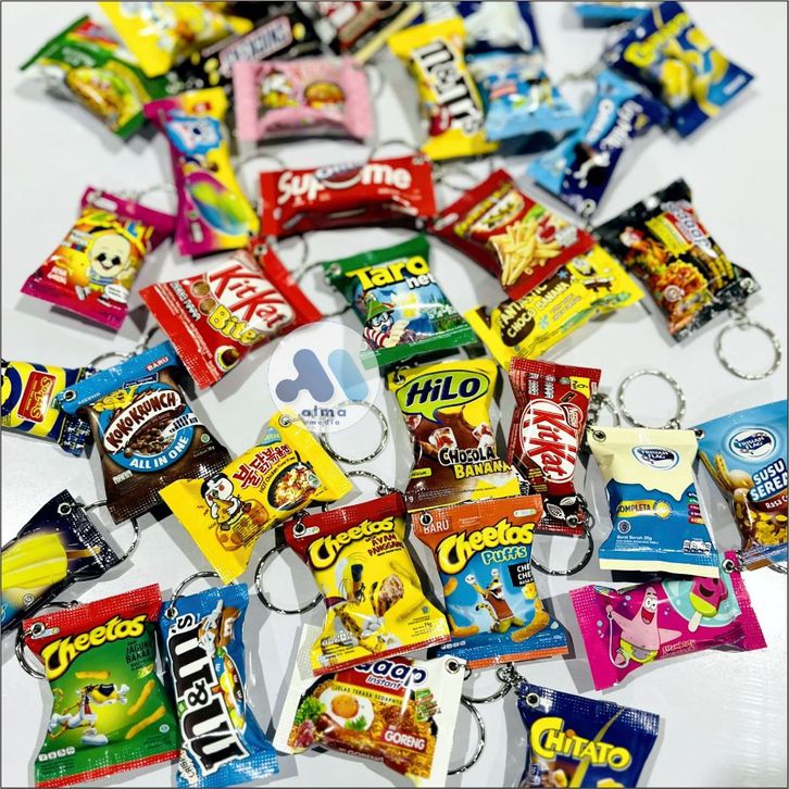 SOUVENIR PERNIKAHAN 50PCS DAN 30 PCS GANTUNGAN KUNCI MAGNET KULKAS SNACK MAKANAN RINGAN CEMILAN GANCI UNIK KEYCHAIN