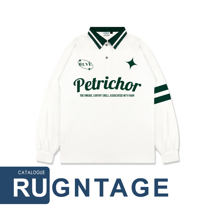 Longsleeve Rugby Polo T-shirt | PETRICHOR | Stripe White Unisex