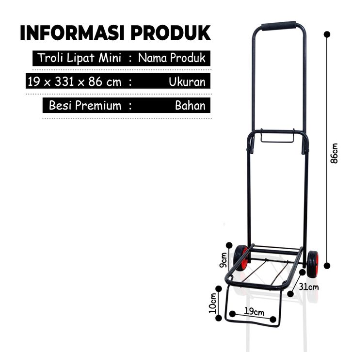 Troli Lipat Serbaguna Troli Barang Galon Gas Koper / Trolley Besi Portable Mini Kuat & Ringan Dengan Tali - V7A1/ Troley