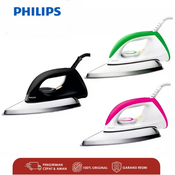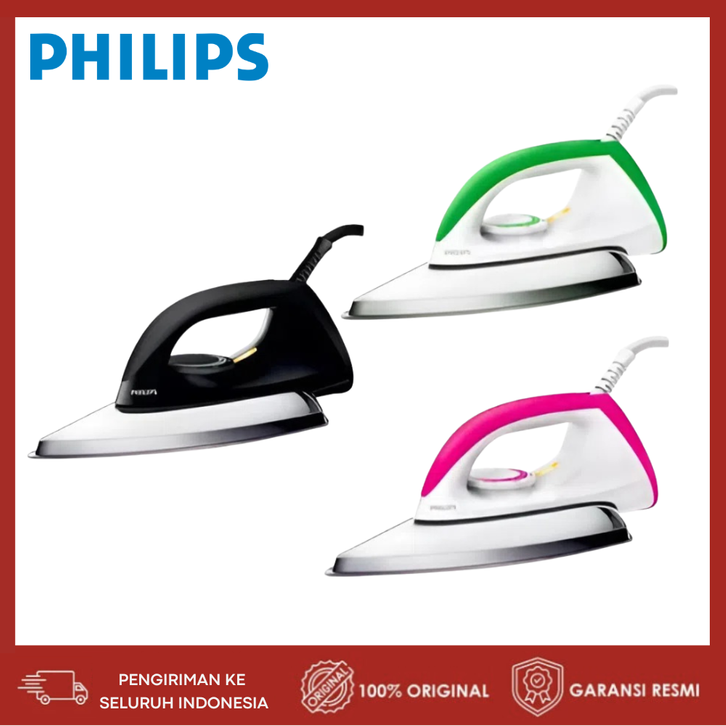 SETRIKA PHILIPS KERING HD1173 DRY IRON ANTI LENGKET SETRIKAAN GOSOKAN BAJU LISTRIK TERBARU ORIGINAL PINK TERBAIK