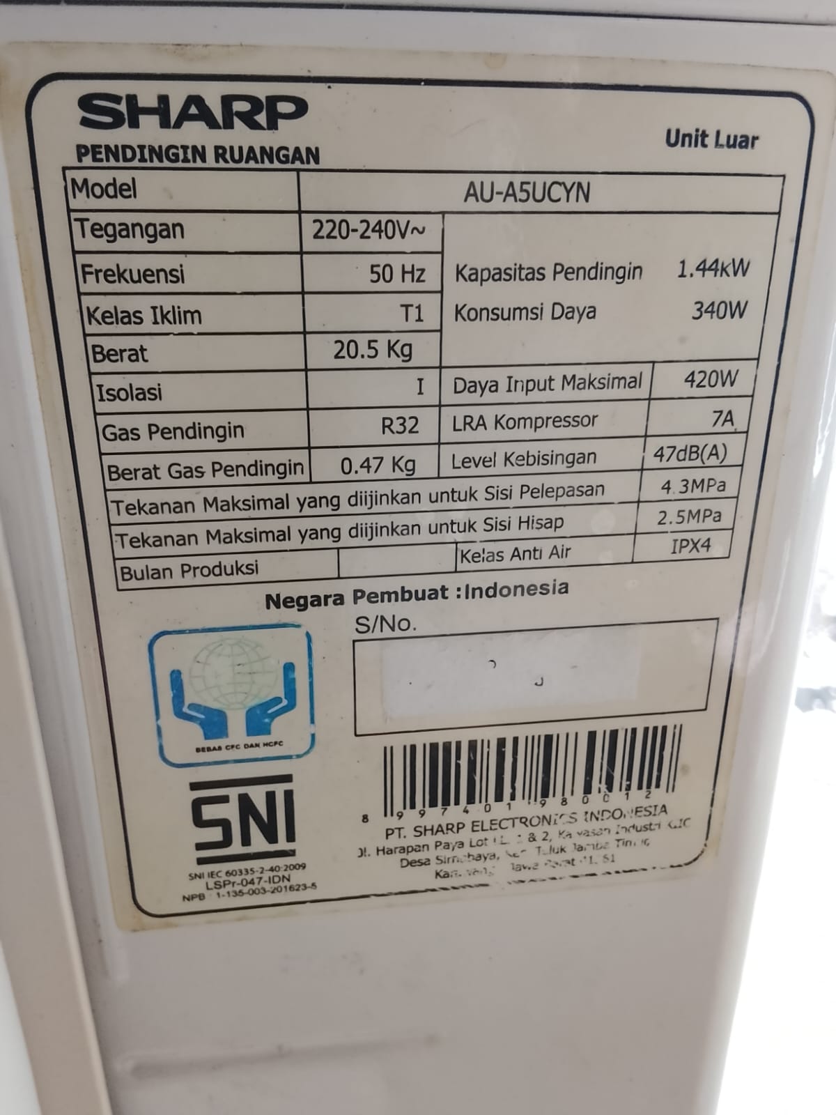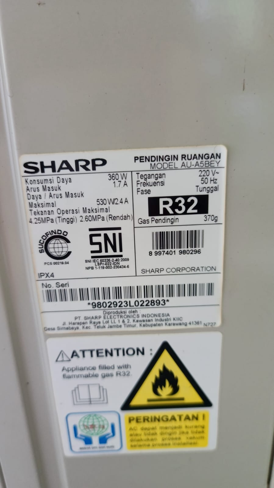 AC Sharp 1/2 PK R32 second + pasang free ongkir jabotabek