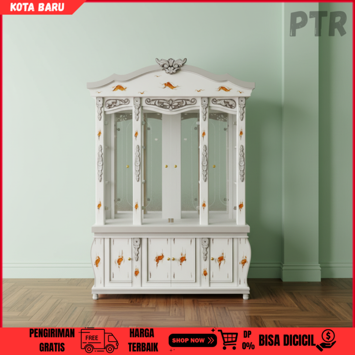 lemari kaca ruang tamu Bufet Pajangan Crystal Kristal Wush Pajangan Tv Kaca Lemari Tv Kristal 4 Pintu BK21
